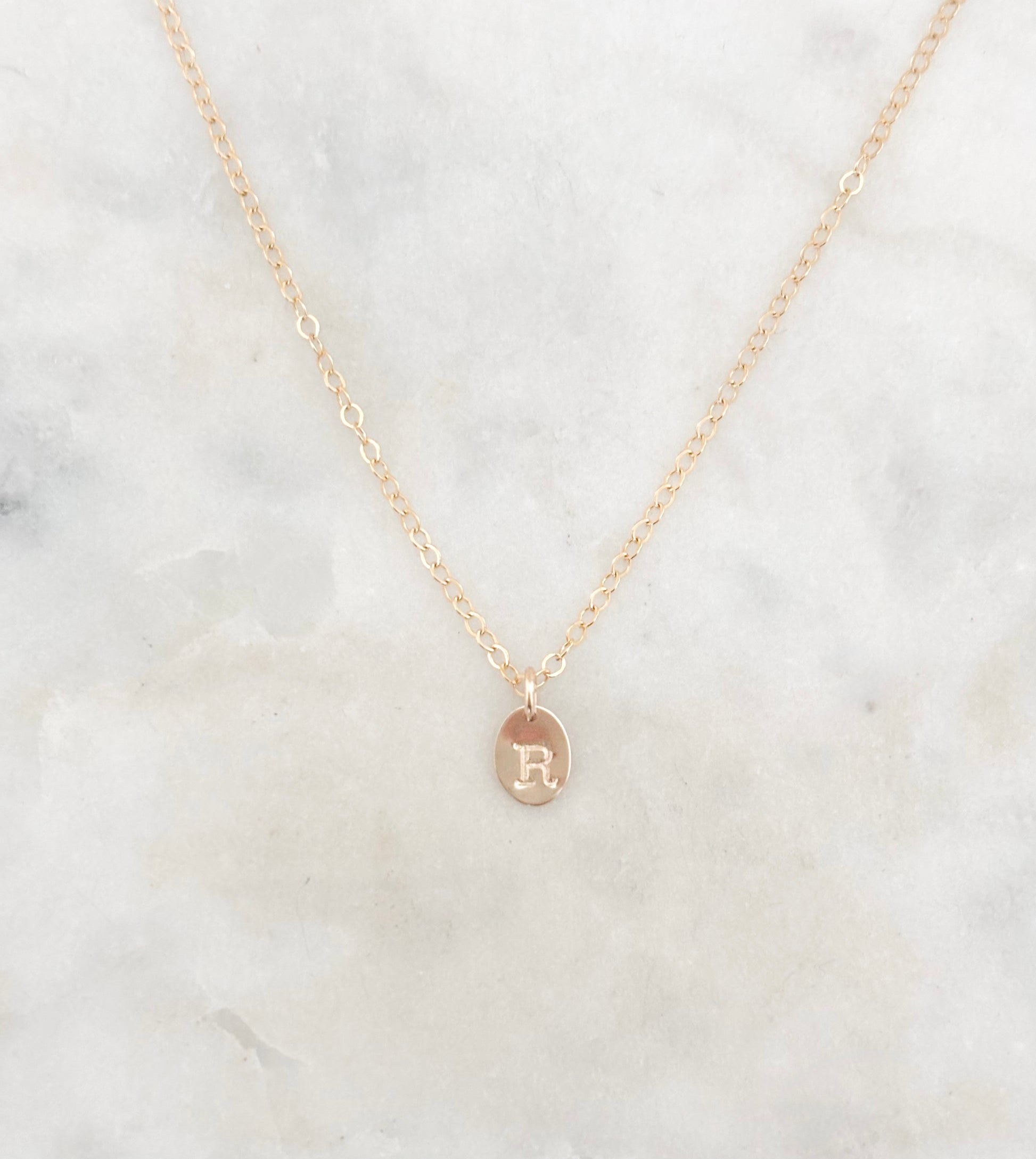This Initial Necklace is a minimal, personal piece with a hand-stamped letter pendant on a delicate chain. Customize it with your own initial or one that holds special meaning!