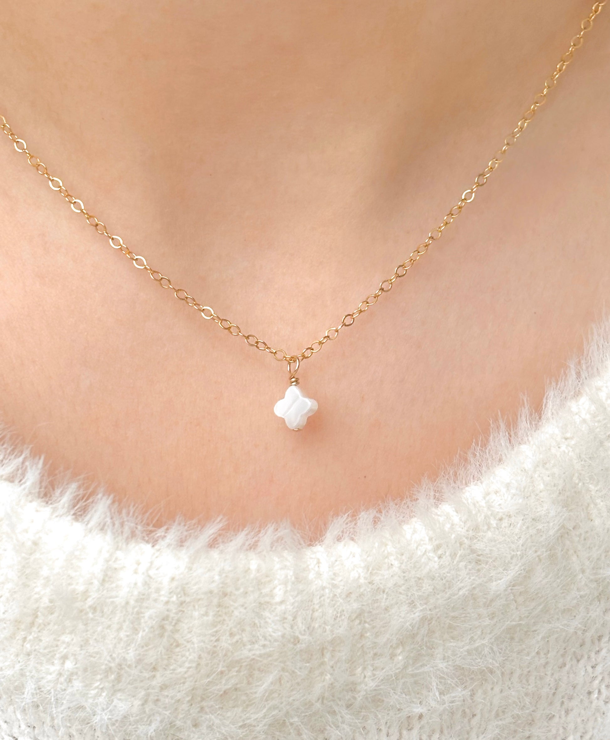 The Mae Necklace is a delicate piece, featuring a classic chain and a little mother of pearl clover. Minimal, chic, and effortless—perfect for everyday wear.