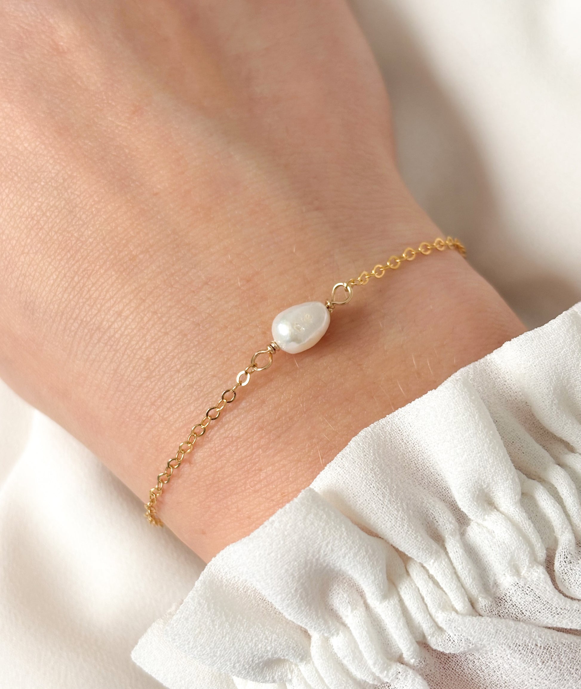 The Selene Bracelet is a delicate piece, featuring a single lustrous freshwater pearl though a classic chain. Minimal, chic, and effortlessly timeless—perfect for everyday wear or layering.