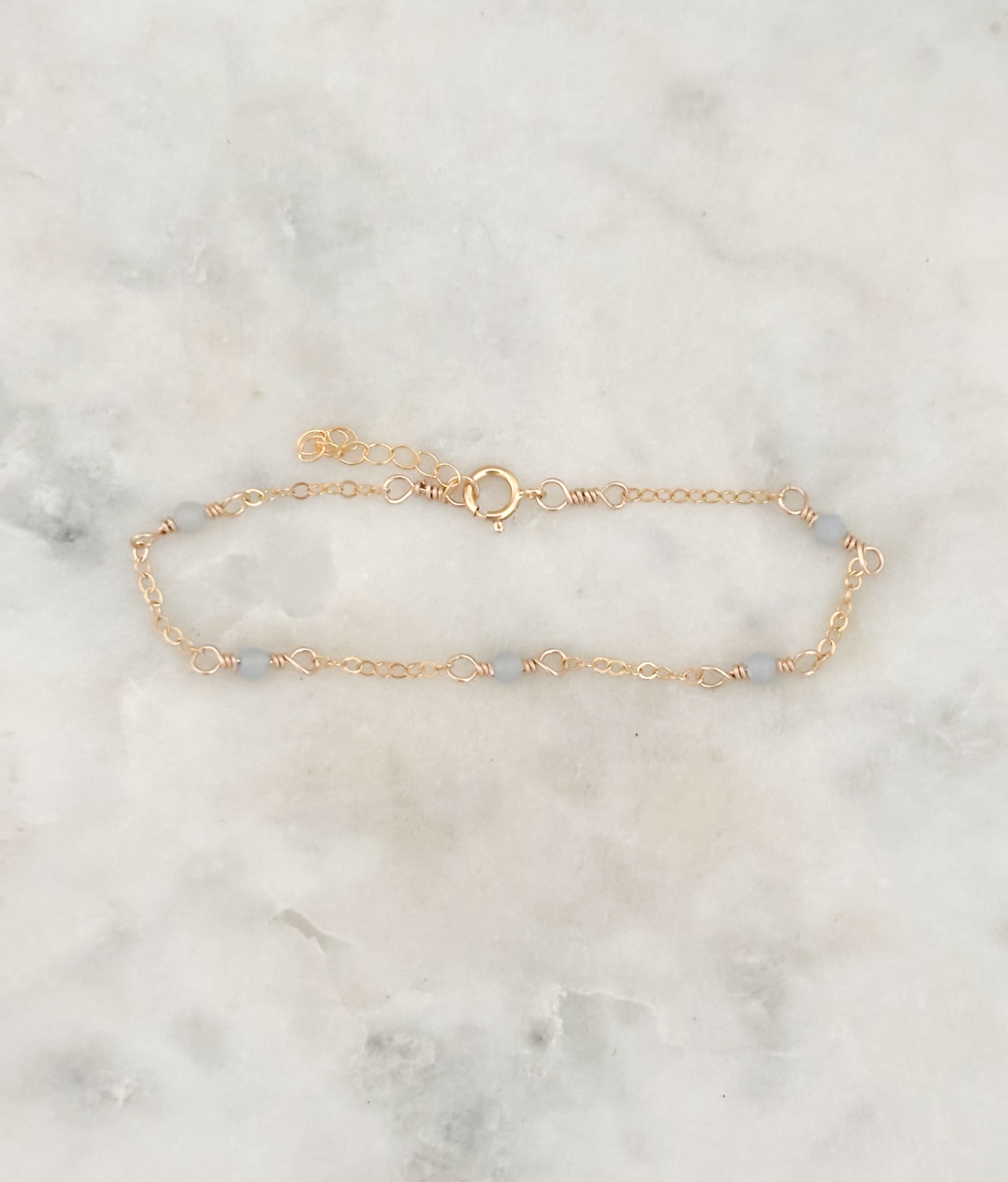 This dainty angelite bracelet is minimal and timeless, perfect for everyday wear.